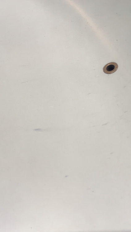 This item has some discoloration/ blemishes that are approximately 5” long and are located in the center of the seat (see photos).