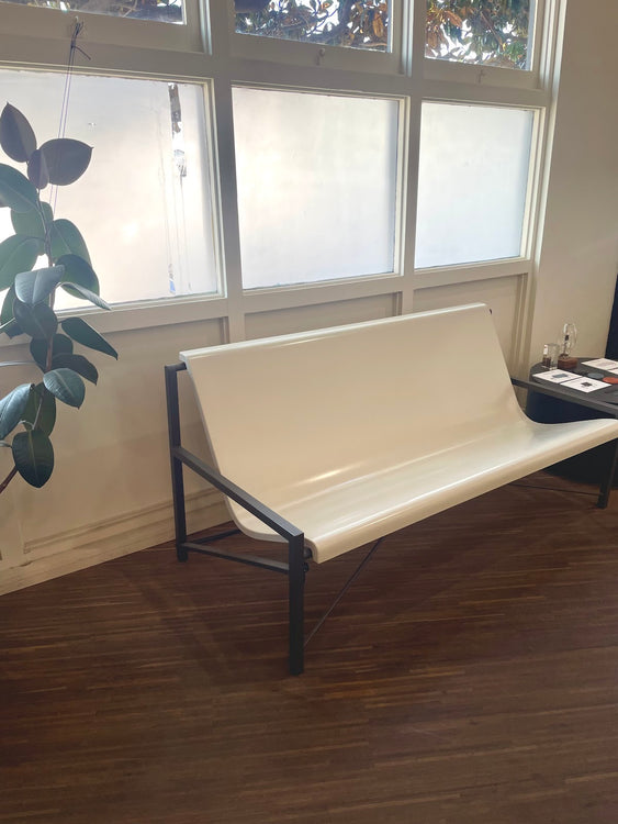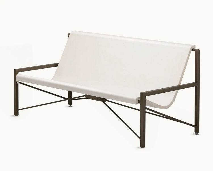 The Evia Lounge brings gentle, radiant warmth to outdoor living, pairing modern simplicity with the timeless lines of a sling chair. Its open, minimal profile and generous bench seat create an inviting place to stretch out and unwind. Handcrafted to order, the Evia Lounge offers comfort that’s as striking as it is lasting.